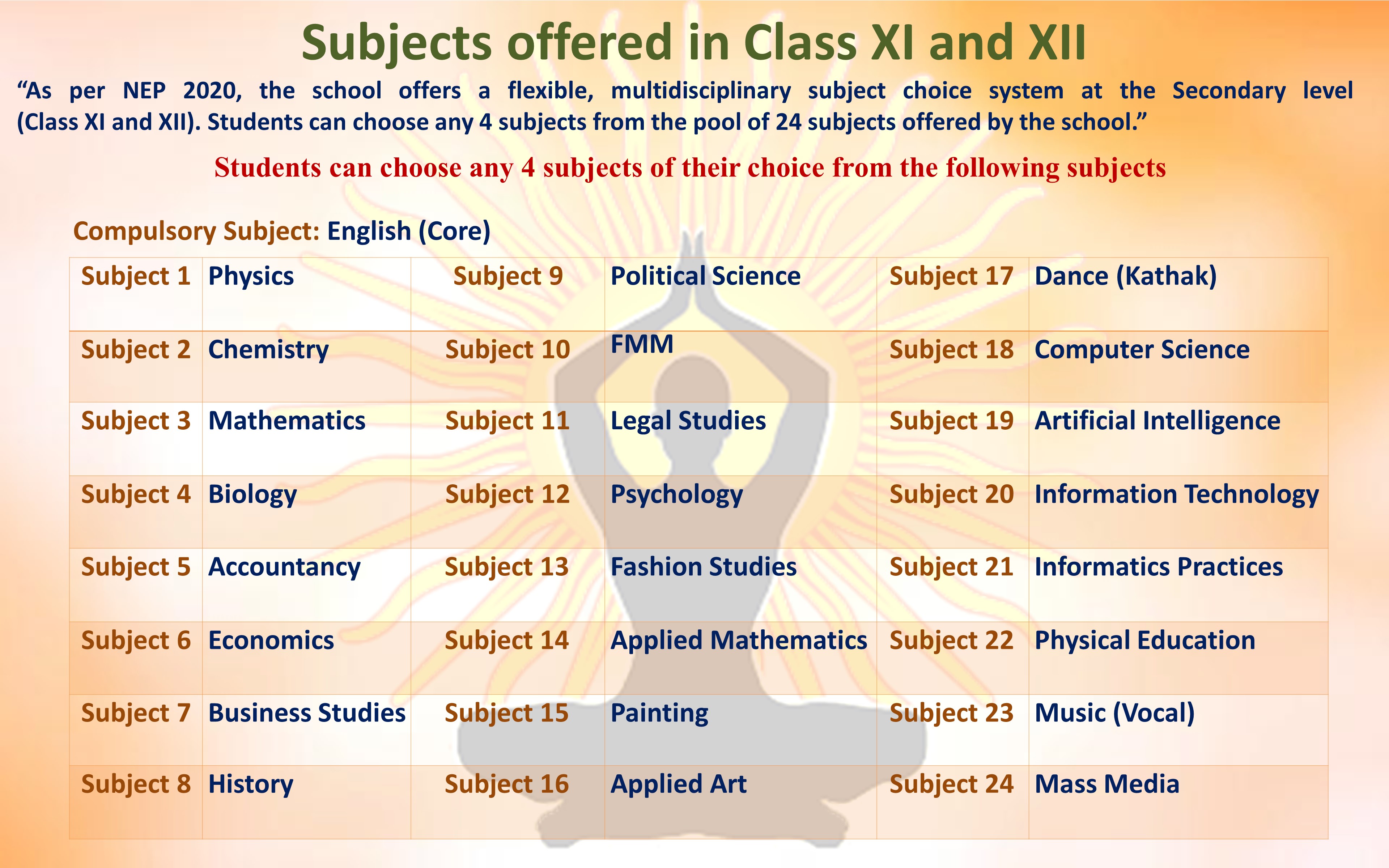 SUBJECTS OFFERED IN CLASS XI & XII